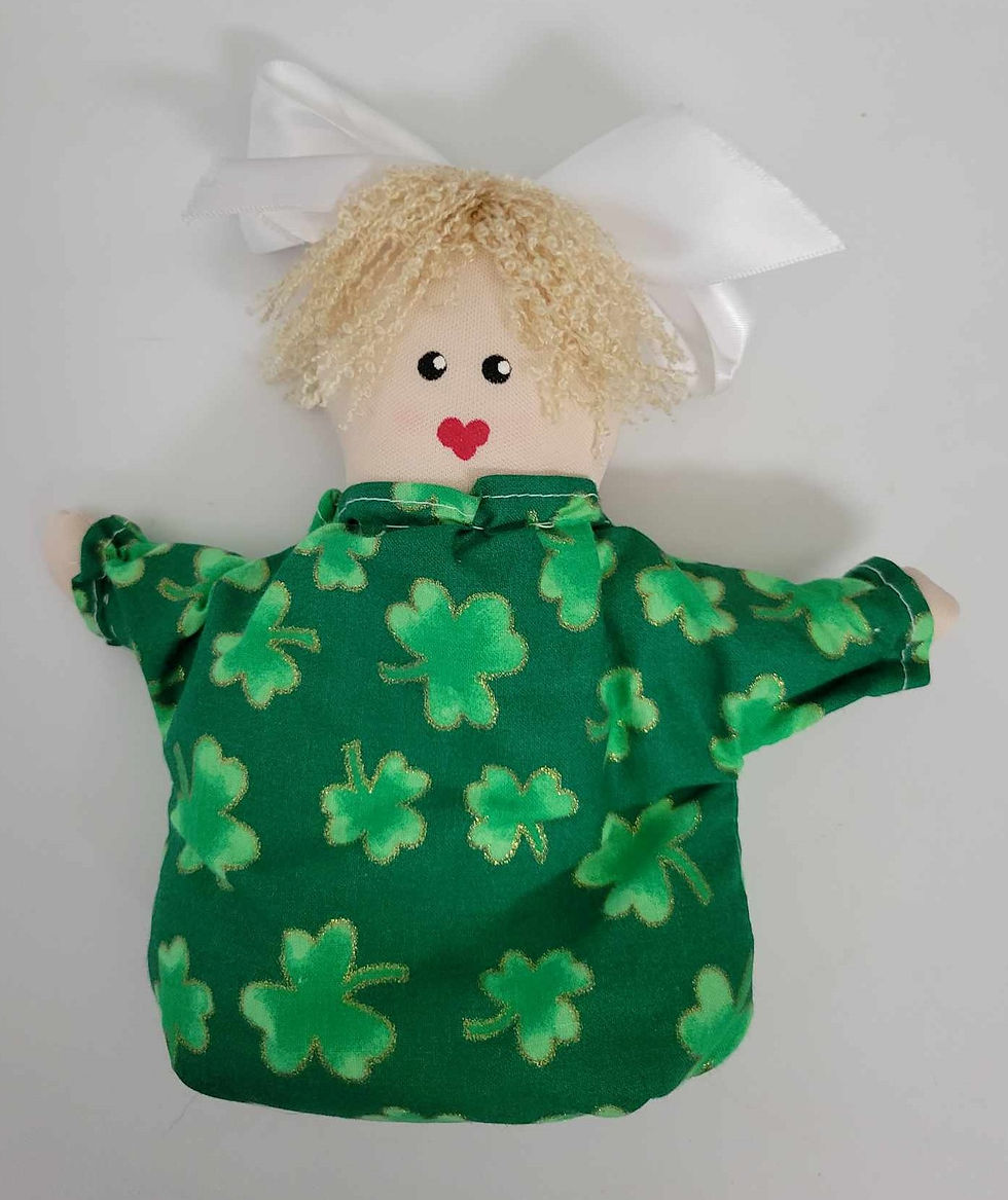 These dolls are my version of a beanie baby. They are approximately 7 1/2 inches tall and can be made with blond, brown, red or black hair.